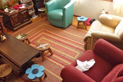 Oh, I was thinking when I saw your picture how much I really love your living room set up. With lots of big chairs? And how they match the carpet perfectly with the accent aqua color? I really like it.
