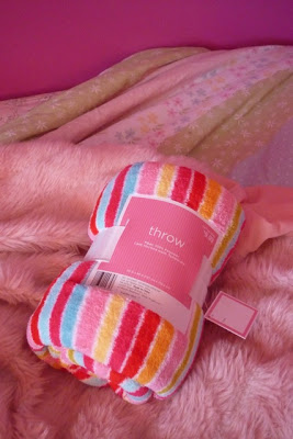 I also found this striped throw at 75% off—$2.49 down from $9.99. I think clearance Valentine’s stuff is excellent for a girly little girl’s room: lots of pink and hearts. In a previous year I bought Elizabeth a large heart-shaped pillow.