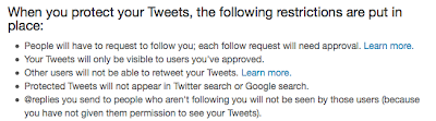 This explains why I have felt so confused, looking at Twitter conversations that seem to actively include me and yet I can’t see half of the tweets. Sometimes I’ll see someone else answering someone who seems to have asked me a question—but I can’t see the protected account, so I don’t know what the question was.
