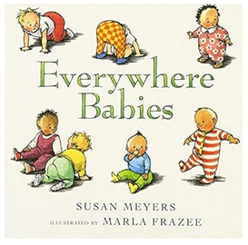 Everywhere Babies, by Susan Meyers and Marla Frazee. This one is starting to get harder to acquire. I choose it because the illustrations show many different kinds of families, without making any kind of big deal about it, which is a big deal.